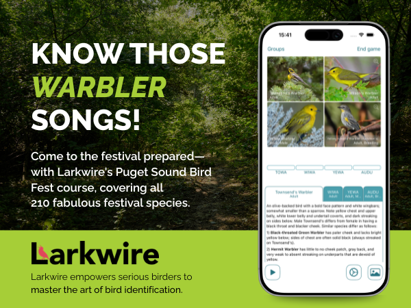 We’re thrilled to announce a collaboration between Larkwire and the Puget Sound Bird Fest! We’re creating a custom dedicated Larkwire course just for the festival, covering only the species you’re likely to encounter during the festival.