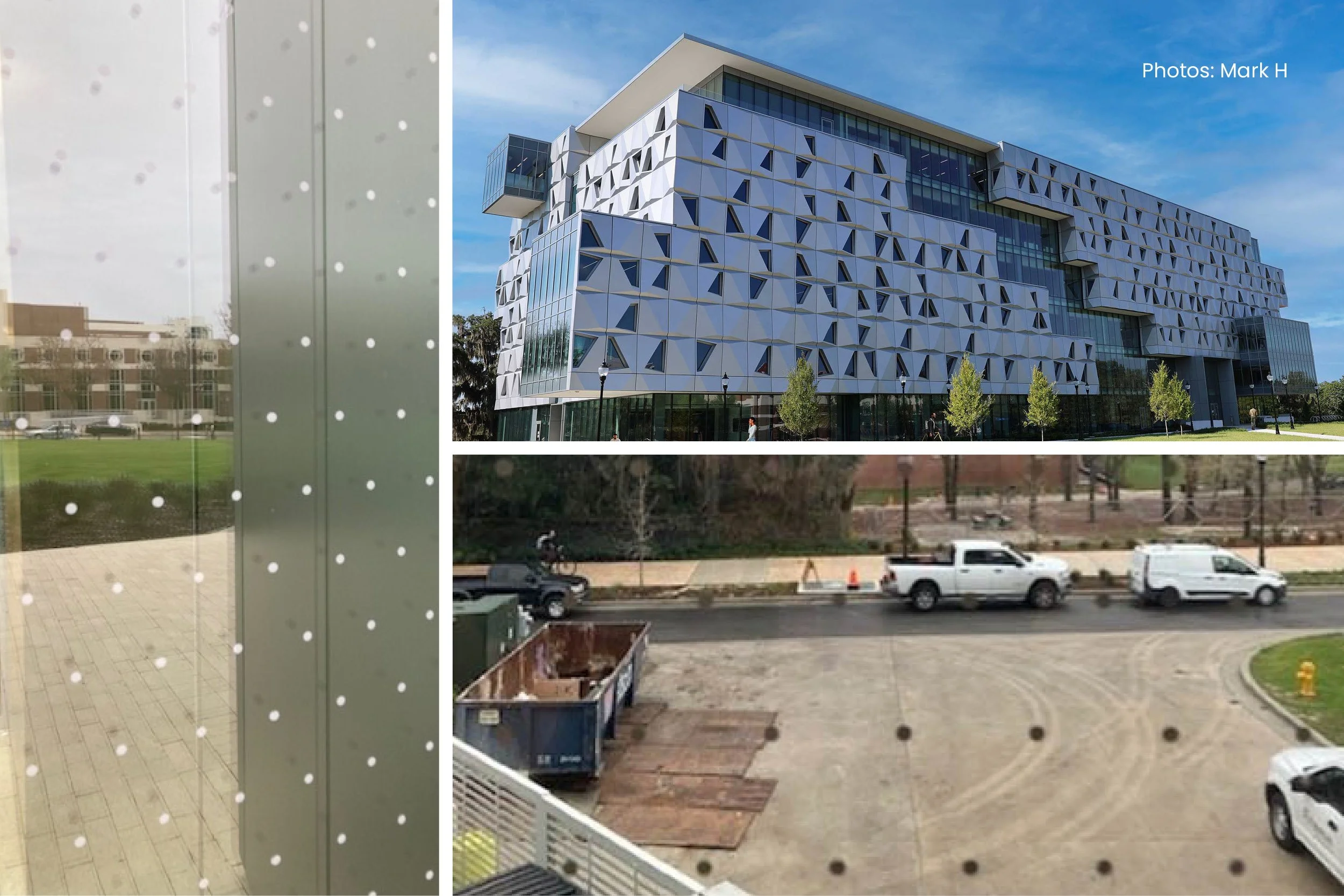 Feather Friendly has been brought into projects where bird-friendly glass was already installed, but collisions continued. In many cases, the issue wasn’t solution efficacy, but solution placement. The result was additional treatment, or in some cases, full replacement.